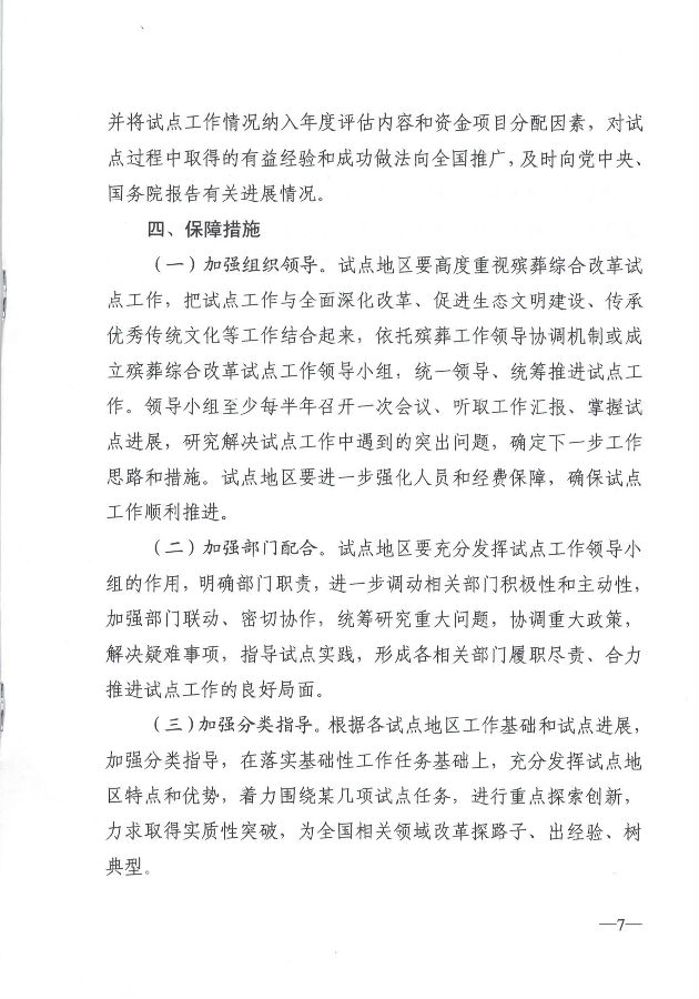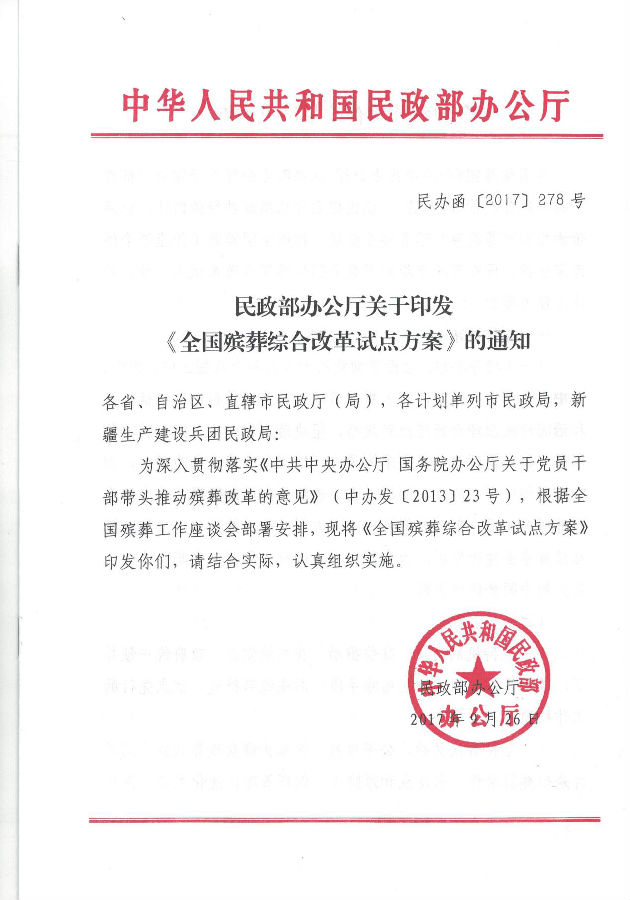 民政部辦公廳關(guān)于印發(fā)《全國殯葬綜合改革試點方案》的通知