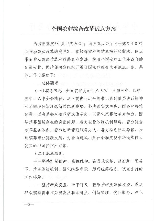 全國殯葬綜合改革試點方案