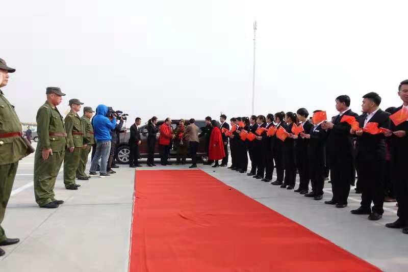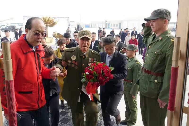 綁著大紅花載著老兵的車緩緩駛?cè)胩焯媚箞@的時(shí)候,禮炮和鞭炮齊響,工作人員和群眾共同手搖紅旗,站列整齊的退伍兵行軍禮,共同歡迎老兵。