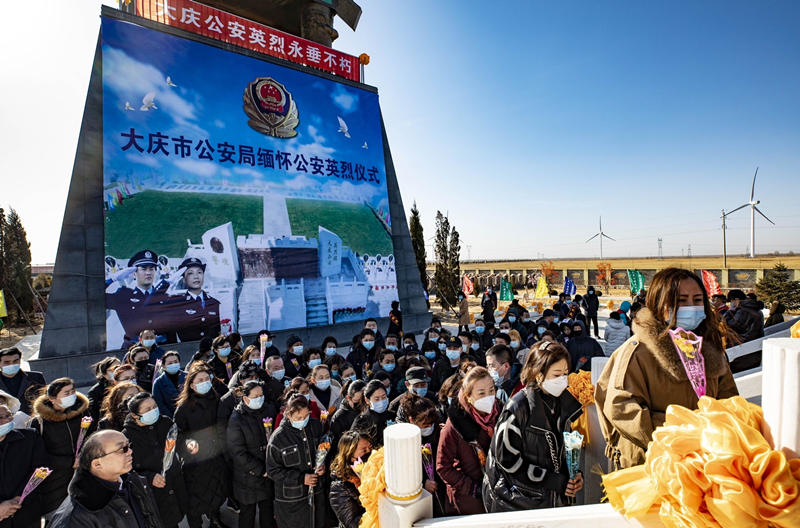 自3月15日起,為深切緬懷保衛(wèi)大慶經(jīng)濟(jì)發(fā)展、社會(huì)和諧穩(wěn)定、人民安居樂業(yè)而英勇犧牲的公安英烈,大慶市組織開展了緬懷公安先烈、致敬英雄活動(dòng),讓胡路區(qū)政府、薩爾圖政府、紅崗區(qū)政府、公安、民政、社區(qū)、志愿團(tuán)體、民間團(tuán)體等單位和團(tuán)體500余人次參加公祭活動(dòng),一束鮮花、一個(gè)鞠躬、幾許默哀、良久靜思,過程簡潔卻不簡單,儀式肅穆而不敷衍,情感飽滿而不輕慢,寄托對公安英烈的無限哀思,追憶他們的豐功偉績,學(xué)習(xí)他們的崇高精神。參與公祭的社區(qū)工作人員說:“他們是為保護(hù)大慶人民英勇犧牲的,我們無論遇到什么天氣都應(yīng)來掃墓祭奠,以此敬仰英烈?!? 黑龍江省建筑業(yè)協(xié)會(huì)副會(huì)長李鵬說:“感謝大慶公安英烈沒有他們的付出就沒有我們今天的美好生活,是他們用鮮血保衛(wèi)著我們的城市發(fā)展,我們應(yīng)時(shí)刻傳承并發(fā)揚(yáng)先烈精神......”