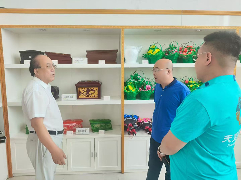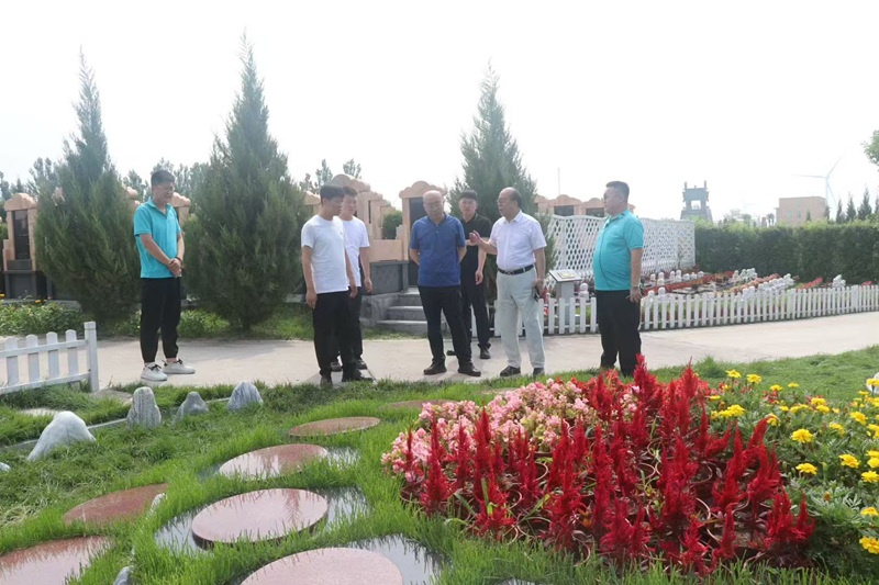 省殯葬協(xié)會會長,天堂墓園負責(zé)人馬鑫陪同謝局長檢查指導(dǎo),并向謝局長匯報了園區(qū)整體情況。