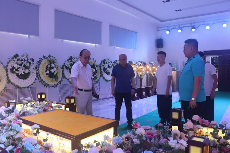謝局長認真查看骨灰告別禮儀廳,無煙焚燒區(qū),節(jié)地生態(tài)葬,銷售價格和服務(wù)狀況。