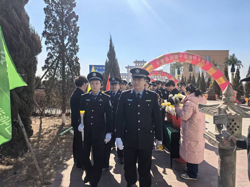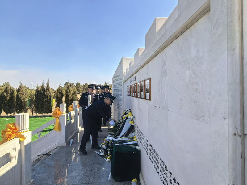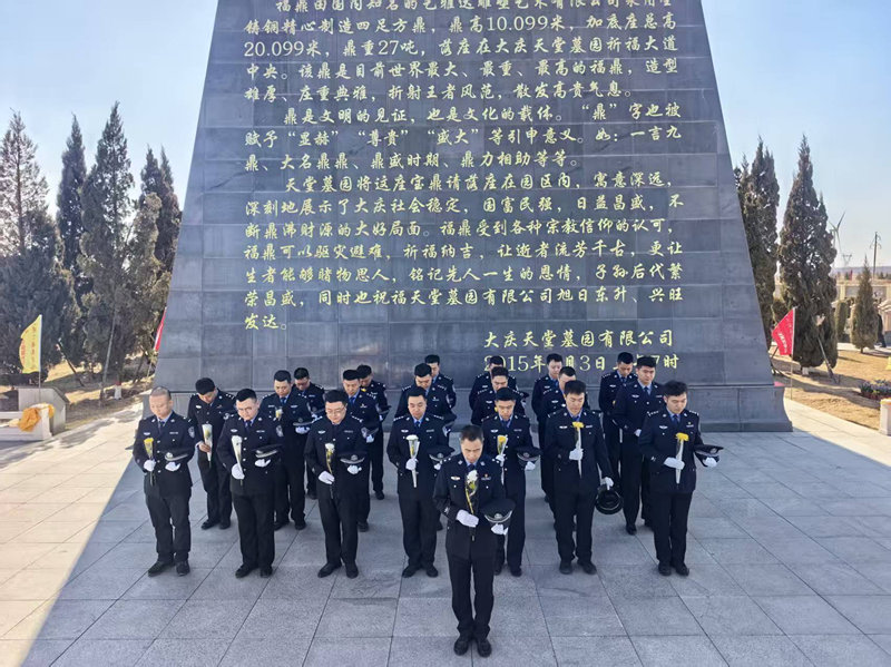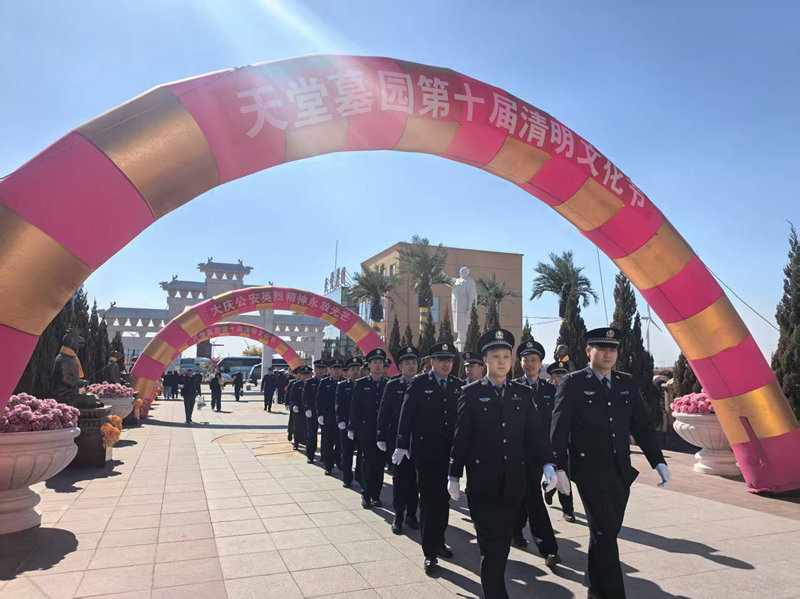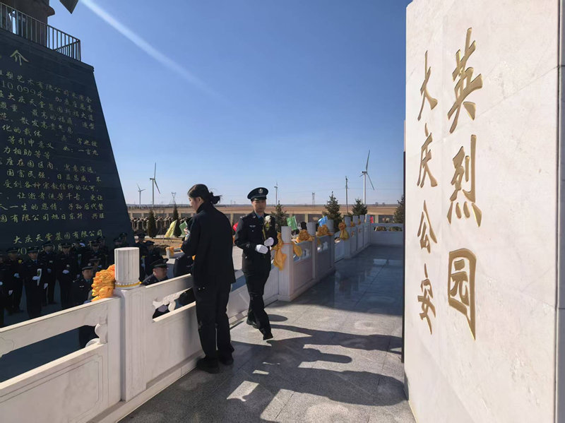 4月1日上午,大慶市公安局東安分局民警在副局長羅中宇帶領下來到公安英烈園為逝去的英烈戰(zhàn)友脫帽、鞠躬、敬禮、獻花。